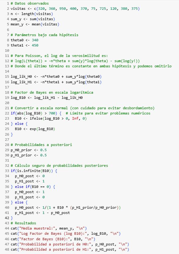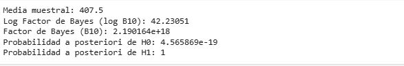 Esto indica que, después de considerar los datos, la probabilidad de que H₁ sea cierta es prácticamente 1 (o