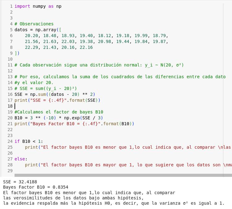 El logaritmo del factor de Bayes es positivo y muy grande, indicando fuerte evidencia a favor de H1.