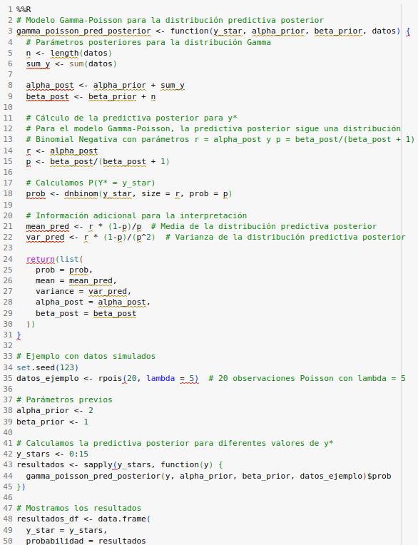 Calcula la Distribución Predictiva Posterior del Model Gamma-Poisson.